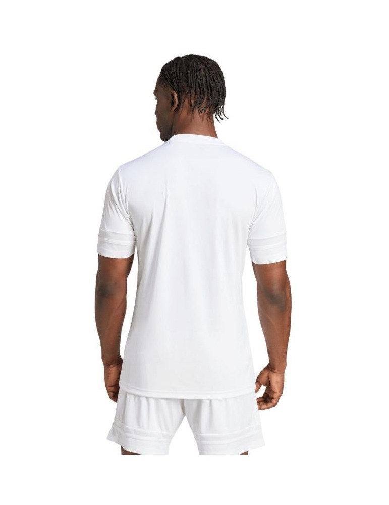 Klasický sportovní dres adidas Squadra 25 je ideální volbou pro tréninky i zápasy. Lehký, prodyšný materiál AEROREADY odvádí pot a udržuje tě v suchu i při maximálním výkonu. Moderní střih s ikonickými třemi pruhy na ramenou a decentním logem adidas dodává profesionální vzhled. Perfektní volba pro sportovní týmy i individuální hráče.