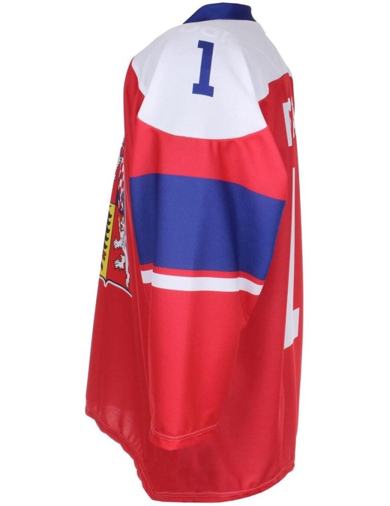 UPOZORNĚNÍ: U ZAKÁZKOVÉ VÝROBY DRESŮ S VLASTNÍM POTISKEM NEZASÍLÁME ZBOŽÍ NA DOBÍRKU. VÝROBU VŽDY REALIZUJEME POUZE PO PLATBĚ PŘEDEM PŘES BANKOVNÍ ÚČET ČI PLATBĚ ONLINE KARTOU PŘI VYTVÁŘENÍ OBJEDNÁVKY! ZBOŽÍ VYROBENÉ NA ZAKÁZKU NELZE VRACET. Replika českého hokejového dresu z roku 2024, kdy česká reprezentace získala zlatou medaili na MS pořádaném v České republice. Na dres si můžete umístit vlastní jméno a číslo - tento požadavek uveďte do poznámky v objednávce. Potisk je bez doplatku.